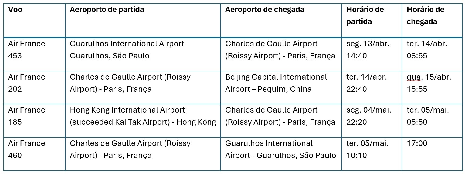 Apresentação no aeroporto de Porto Alegre para embarque com destino à Pequim, com conexões.