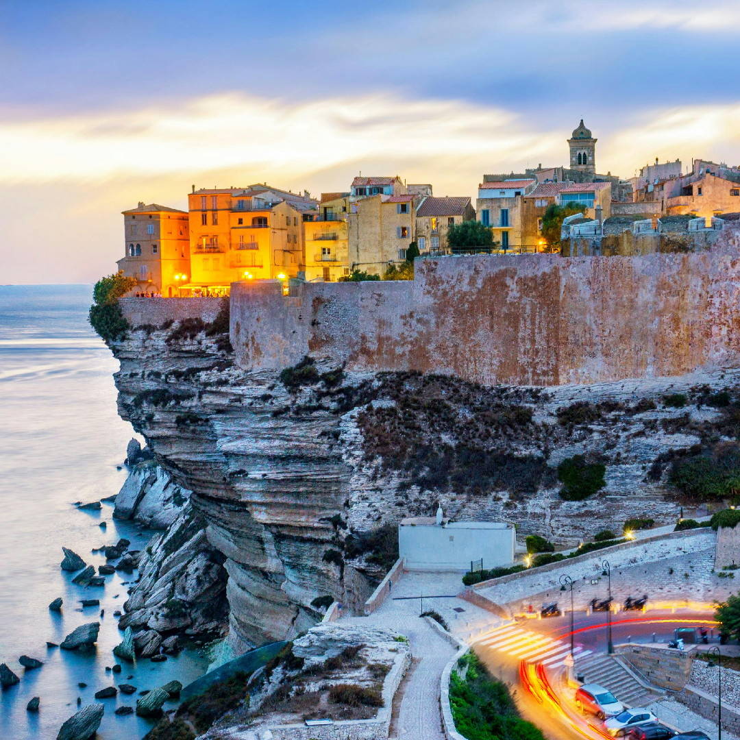 Café da manhã. Saida para um mini-cruzeiro panorâmico de 1 hora ao longo das imponentes falésias de Bonifácio. Um passeio de barco é indispensável para admirar as espetaculares grutas, enseadas escondidas e autênticas joias incrustadas nas falésias brancas, além da sugestiva Escadaria do Rei de Aragão. Continuação para Porto Vecchio, bela cidade de origem genovesa situada numa baía declarada Patrimônio da Humanidade pela UNESCO. Em seguida, seguiremos para Bastia, encantadora cidade situada sobre um penhasco à beira-mar. Visita guiada ao centro histórico, com seus edifícios em tons de rosa, ruas sinuosas e o animado porto que recebe os ferries, proporcionando panoramas inesquecíveis. Hospedagem em Bastia.