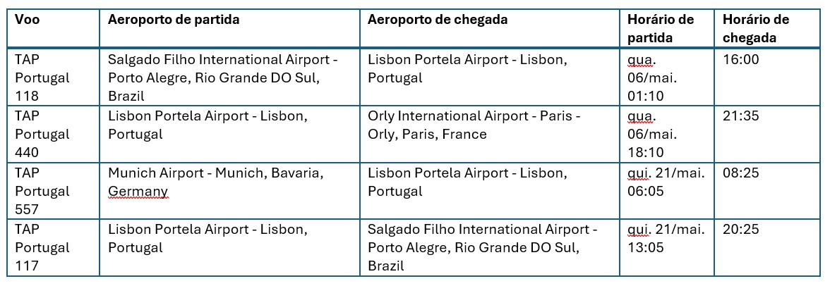 Apresentação no aeroporto de Porto alegre para embarque com destino à Paris, com conexão.